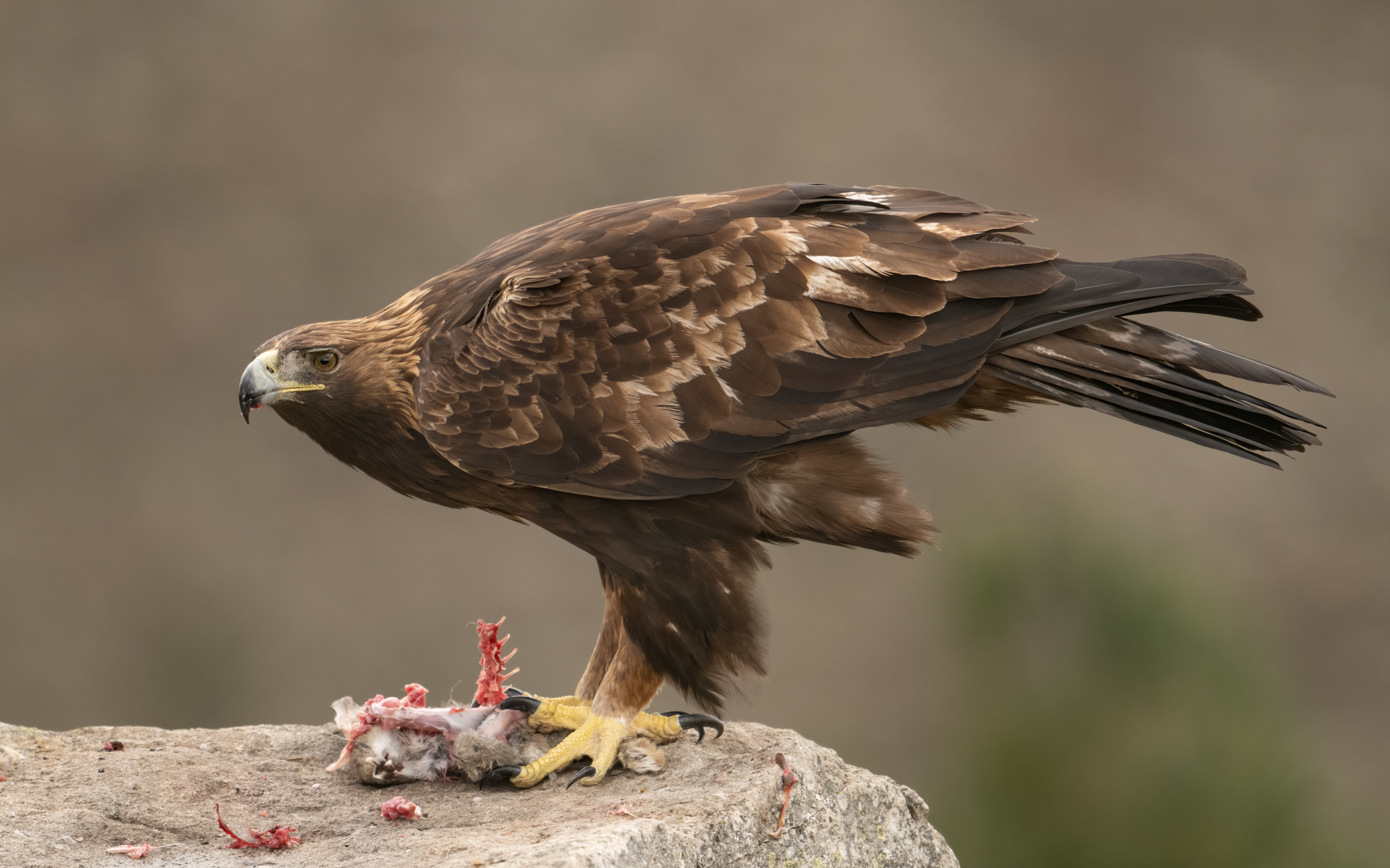 It is possible to photograph Golden Eagle, Imperial Eagle, Booted Eagle, Goshawk, Griffon Vulture, Black Vulture, Iberian Fox, and a selection of small birds such as Iberian Magpie, Shrike, and many small birds. All against a magnificent back drop of the Central Mountains. All the hides have been carefully located to provide jaw dropping back drops to your images.