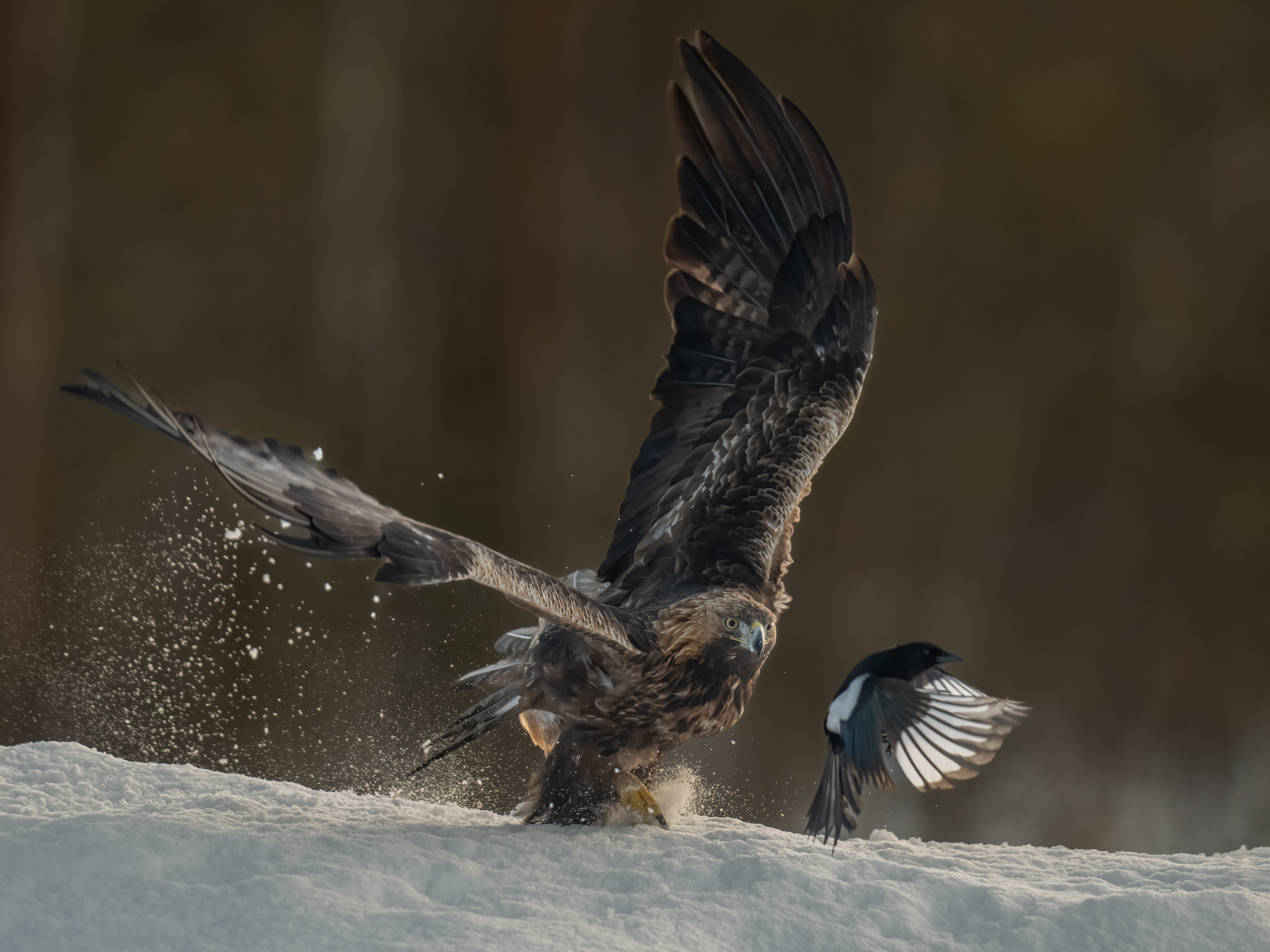 There is no better place to photograph Golden Eagles, on the edge of the Scandanavian Pine forests, from Connys heated purpose built hides.