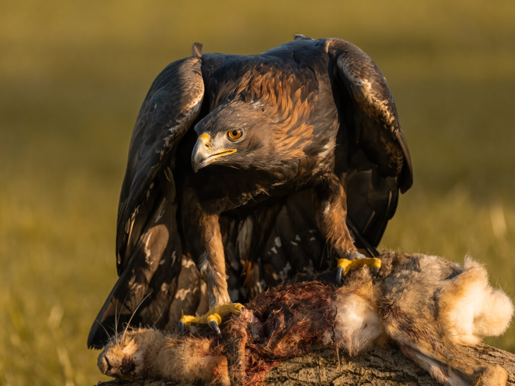 An amazing opportunity to get up close to this iconic bird of prey as its feeds on its natural prey of rabbit or pheasant.
